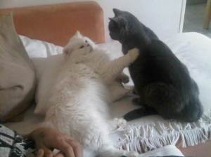 Darf ich vorstellen, Billy und Luna… unser weißer Perserkater ist der Billy und die graue Karthäuserdame die Luna.